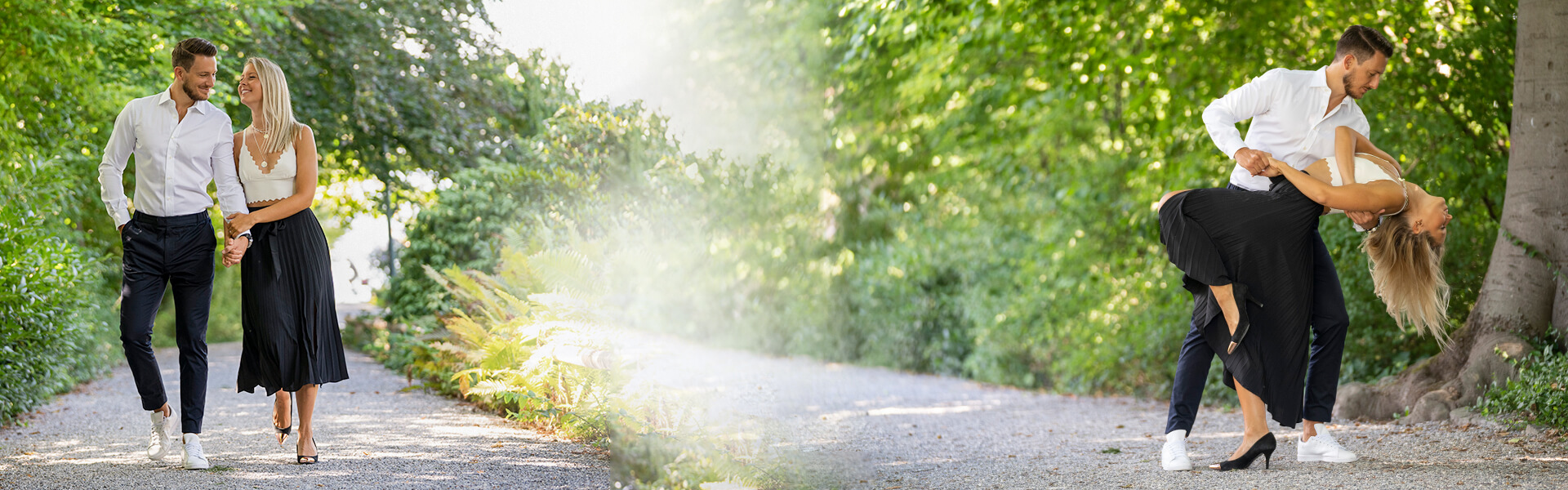Ihre Verlobungsfotos sind nicht nur eine Erinnerung an die Zeit vor der Trauung. Sie helfen Ihnen auch bei der Vorbereitung Ihrer Hochzeit. Verwenden Sie die Bilder vom Verlobungs-Fotoshooting zum Beispiel auf Ihren Hochzeitseinladungen, bei deren Gestaltung wir Ihnen ebenfalls behilflich sind auf Ihren ausdrücklichen Wunsch. Doch wie entscheide ich mich für die geeignete Kleiderwahl bei der Fotosession? Beim Verlobungsshooting sollten Sie sich rundum wohlfühlen und daher in Ihren Lieblingsalltagskleider erscheinen. Denn das Vorshooting ist wichtig für die weitere harmonisierende Zusammenarbeit im Team und das baldige darauffolgende Hochzeitsshooting. Den Ort in der Natur für die Fotosession bestimmen Sie als Liebespaar. Wählen Sie den Ort aus, den Sie als Paar verbindet. So fühlen Sie sich gleich viel wohler.